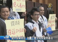 2017-01-24 20:54:41台鐵產業工會年前抗議一波波,(24日)上午來到臺北地檢署控告台鐵局長,強制員工勞動,原因就是 前一天工會到局長室,送聲明書 還有千人連署的依法休假單,要求在除夕年假休息,但被拒收。工會決定提告,來爭取權益。