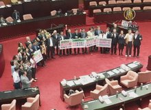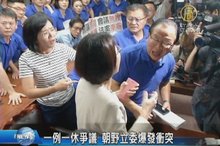 2016-10-26 12:43:42立法院衛環委員會今天(26)原本要處理前一次會議議事錄,也就是勞基法中爭議多時的「一例一休」,藍綠立委上午六點,就搶佔主席台,國民黨立委要阻止會議進行。朝野立委因此發生衝突。