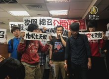 2016-11-02 12:49:24接著帶您關心,一例一休勞基法修法,在立法院沒有獲得共識。昨天佔領,民進黨團總召柯建銘辦公室的青年,今天中午,再佔領民進黨中央,手拿標語麥克風,要求公開辯論,拒絕 砍 七天假,稍後有最新消息,我們將為您跟進報導。