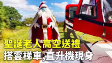 聖誕老人高空送禮 搭雲梯車,直升機現身