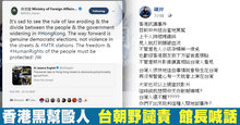 2019-07-22 13:12:39香港黑幫公然毆打反送中民眾,港警與港府的態度引起強烈質疑。台灣朝野關切與譴責,外交部長吳釗燮推特發文喊話港府要保護人民;時代力量立委 徐永明關注中共控制香港與台灣黑幫的情況。