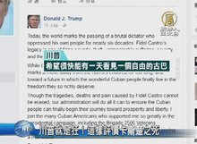 2016-11-27 20:22:55古巴前獨裁者斐代爾˙卡斯楚過世,美國總統當選人川普與總統歐巴馬都針對卡斯楚的死發表聲明。不過,雙方對卡斯楚的歷史定位和 美古政策 有著顯著差異。