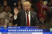 2016-12-03 21:16:21川普週四晚間正式宣布,將會任命已經退役的美國海軍陸戰隊上將馬提斯,為新內閣的國防部長。這一提名受到美國軍界的廣泛歡迎。