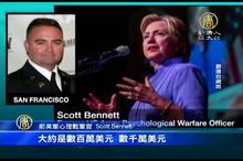 2016-10-27 12:49:53曾明確表態,不支持川普的《今日美國》報,週三,突然揭露,希拉蕊「選戰資金來源」,多數來自華爾街和律師。當天,川普則表示,在大選的最後階段,他將自費1億美元,用於選戰。