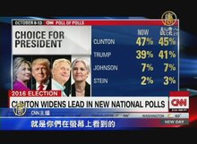 2016-10-18 20:46:50美國總統大選第三場電視辯論即將在週三登場,CNN最新民調顯示,希拉蕊領先川普八個百分點,拉大領先優勢。不過也有民調發現,川普錄音事件,似乎影響不大。