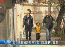 2016-12-28 20:06:24天氣依舊冷颼颼。大陸冷氣團發威,今天台灣平地最低溫,出現在北部的淡水,清晨只有10.9度,其次在新竹12.4度,台北和板橋都出現12.6度的低溫。加上熱帶性低氣壓外圍雲系影響,全台都是濕濕冷冷,一直要到週五,水氣才會減少。週末跨年夜雖然溫度回升,但日夜溫差比較大,局部地區仍有短暫降雨的機率,有計畫要參加戶外跨年活動的觀眾朋友,一定要做好保暖。