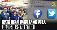 俄羅斯通過嚴格報導法 臉書推特被屏蔽
