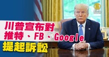 2021-07-08 13:07:15美國前總統川普,週三宣布,他正在對三大科技公司推特、臉書和谷歌提起訴訟,捍衛言論自由權。
