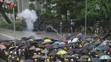 港警再度施放催淚彈 記者圍人牆阻衝突