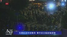 香港元朗警民對峙 港警舉黑旗釋催淚彈
