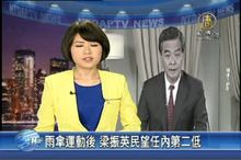 2014-10-14 21:22:57港人要求真普選,問責梁振英的呼聲越來越高,來看到今天出爐的最新民調,港大民意研究計劃,最新一份調查顯示,在雨傘運動進行一週後,特首梁振英支持度跌到40.6分,這是去年11月以來的新低,也是梁振英上任以來的第二低。