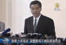2014-10-13 12:46:27香港雨傘運動已經超過二週。香港特首梁振英星期日首次接受媒體採訪,將施放催淚彈的責任推卸給前線警員。學聯、學民思潮及佔中發表聯合聲明批駁,指真正失控的港府。而梁振英貪腐早應下台。