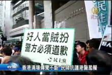2014-12-22 21:16:42港人民心思變,禮拜天,香港社民連到警察總部抗議,批評特首梁振英和警務處處長曾偉雄逼迫警方使用暴力,毆打和拘捕雨傘運動的示威者,要求兩人為此下臺。