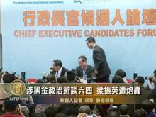2012-03-14 03:18:09避談六四、醜聞 梁、唐遭炮轟 ,涉黑金政治避談六四 梁振英遭炮轟