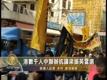 2012-03-26 19:18:22上千香港民眾數走上街頭吶喊「不要共產黨治港」。 ,梁振英當選香港特首 小圈選舉受議