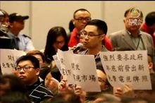 2012-12-05 21:34:56一直迴避公開交代僭建事件的香港行政長官梁振英,星期一出席施政報告與財政預算案首場諮詢會時,遭到多個民團示威抗議,要求梁振英下台。不少市民批評他在僭建問題上誠信盡失,而且意圖收緊言論自由空間,要求他立即發放免費電視牌照。