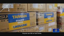 烏克蘭人舉台灣國旗致謝 防衛物資一字排開