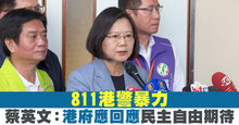 香港警方811暴力清場,甚至在車站內以橡膠子彈、催淚彈攻擊民眾,反送中受到國際矚目,中華民國總統蔡英文上午也回應,希望港府回應民眾對自由民主的訴求,蔡英文也強調台灣要堅定守護主權。