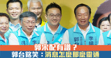 2019-11-09 20:21:50再來看到,鴻海集團創辦人郭台銘 與台北市長柯文哲 今天同台,聯手為新北市第10選舉區立委參選人 李縉穎站台,對於傳出和親民黨主席宋楚瑜「郭宋配」的消息,郭台銘沒有否認,但只向媒體說:「你們消息怎麼那麼靈通?」