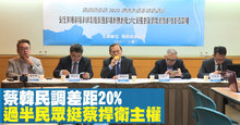 蔡韓民調差距20% 過半民眾挺蔡捍衛主權