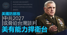 2021-11-04 12:45:38中共升高台海緊張局勢,美國國防部3日公布中共軍力報告指出,中共企圖在2027年時逼迫台灣與其談判;另外,美國參謀長聯席會議主席馬克·米利 週三(11月3日)在出席公開活動時表示,如果被要求,美國軍隊「絕對」有能力保護台灣免受中共的攻擊。