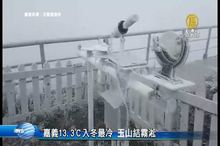 2017-12-06 12:36:27鏡頭轉回台灣,大陸冷氣團來襲,今天清晨,嘉義來到13.3度,是入冬以來最低溫,北台灣今天低溫將下探13度。另外,今天清晨4點,玉山低溫來到零下6.1度,不過沒下雪,而是結了一層白白的霧淞。星期五,又會有更強冷氣團報到,將影響週末天氣,低溫下探12度,提醒觀眾朋友務必做好保暖。