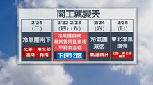 2018-02-21 21:49:53大年初六開工,但好天氣真的隨年假結束了!北台灣今天(21日)起開始變天,隨著冷氣團南下,北部及東北部氣溫將會一路下降,明、後天,北部地區甚至有可能 下探12度。