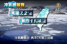 2013-11-30 21:02:38週六新聞一開始先來關心,雖然今年第一波寒流威力已經逐漸減弱,但是受到輻射冷卻效應的影響,今天清晨的氣溫還是非常冷,在嘉義出現了7.9度的低溫,等到陽光露臉之後,白天氣溫已經是明顯回升了。而這樣的天氣會一直持續到下週五,另一波冷氣團,又會報到。