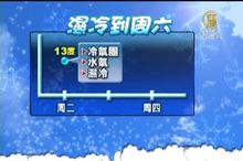 2012-12-08 21:02:40週末新聞一開始,先來帶您關心天氣。受到東北季風和南方水氣北移的影響,北部、東北部今天(8日)一早就轉為溼冷的天氣, 白天高溫大約18~20度,不過,入夜後將下降到15度,週日冷氣團報到,氣溫還會再下滑,低溫只有13度, 提醒民眾要多加注意。