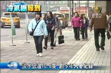 2013-03-02 21:17:14新聞焦點轉回台灣。昨天白天陽光普照,還有27度左右,但冷氣團今天開始發威,全台溫度驟降,清晨淡水最低溫只有11度,北部平均低溫也在14度上下,比昨天一口氣降了13度。氣象局除了針對雙北及基隆宜蘭發布大雨特報,也對全台發佈強風特報。但預計週一才會最冷,西半部沿海空曠地區將會下探十度。