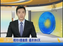 2016-04-11 07:27:17清明四天連假剛結束,行政院人事行政總處,研議明年行政機關放假方案。明年總假日有116天,和今年一樣,三天以上的連假有六個,比今年少一個,過年假日則只有六天,比今年少三天。觀眾朋友可以提早做假日規劃。