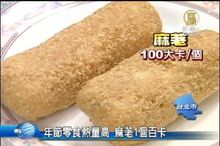 2013-01-28 21:52:13過年快到,民眾趁著歡聚時光,一些年節零嘴也不知不覺吃太多,小心年後肥油上身失控,營養師指出,像外皮裹覆米粒、花生粉的麻荖,吃1個就有100大卡;一片巴掌大牛肉乾也有200大卡,接近一碗飯的熱量,相當驚人。