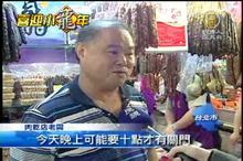 2013-02-08 21:05:53明天就除夕了,婆婆媽媽趕在小年夜採買年貨,台北市以江浙菜、熟食馳名的南門市場,今天一早7點營業就湧入大批人潮,知名老店更是大排長龍,像是蔣宋美齡愛吃的年糕店,要排一個小時才買得到,知名肉乾老店的生意也暴增2、3倍以上,還有60年的熟食老店,周邊的攤位可以說都是擠得水洩不通 。