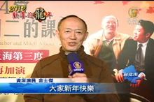 2012-11-29 21:54:01好久不見的國寶級相聲大師吳兆南,今年受國光劇團的邀請,特別從美國返台灣,高齡88歲的他,這次不說相聲,而是要回到他的老本行,京劇,和魏海敏、唐文華共同演出《紡棉花》,以及他的拿手好戲《打麵缸》,將在中國新年,粉墨登場,也透過鏡頭,特別用相聲跟新唐人的觀眾朋友,拜個早年。