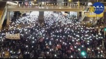 2019-12-09 07:07:07早安新唐人,先帶您關心,香港民陣(民間人權陣線)在12月10日的國際人權日前夕(8日)),周日再度發起遊行,並獲得港警批准,超過80萬港人走上街頭,大喊「驅除共黨 還我香港」等口號,入夜後,再現遊行「燈海」。
