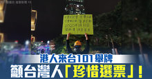 港人來台101舉牌 籲台灣人「珍惜選票」!