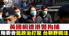 黃國桐遭港警拘捕 陸委會批政治打壓.台朝野關注