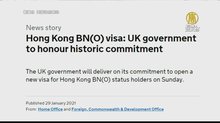 2021-01-29 12:48:23再來關心,港人處境,去年,由於中共實施港版國安法,英國政府宣布,准許擁有英國國民海外護照的香港人取得公民權。從這個月31號開始申請。這項措施准許他們在英國生活5年後申請定居,12個月後就可以申請入籍英國。今天,英國政府發布聲明,英國首相強生在聲明中表示,對這項政策感到自豪,並表示,「我們履行了英國與香港人之間的深厚歷史聯繫和友誼,並捍衛英國和香港同樣珍視的自由和自治」。