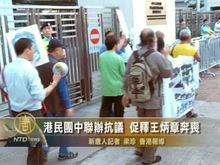 2011-12-01 08:54:07各地營救大聯盟要求中共當局釋放王炳章。 ,港民團中聯辦抗議 促釋王炳章奔喪