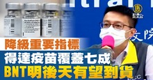 降級重要指標得達疫苗覆蓋七成 BNT明後天有望到貨