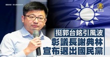 2023-07-31 07:07:33被視為「挺郭派」的彰化縣議長謝典林,今天(31日)深夜,突然在臉書宣布退出國民黨,謝典林表示,自己的目的是希望促成在野大團結;謝典林是繼南投縣議長何勝豐之後,第二個退出國民黨的「挺郭派」黨籍民代,謝典林的姊姊,國民黨副秘書長、立委謝衣鳳,預計今早10點就相關事件,做出回應。