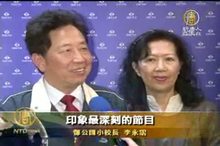2011-04-02 21:27:10因為好友的一分真情郵件,國小校長李永霑伉儷,觀賞了美國神韻國際藝術團4月1日在台北國父紀念館的首場演出,離開會場時,夫婦倆直說很感動,李校長表示,看到「天門大開」節目,行善人齊出,讓他感受到社會改變的希望。