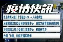 2021-07-16 20:20:50來看到今天的一組疫情訊息。今天本土病例又回升!確診新增29例 、4人染疫病逝。民眾闖關混打疫苗頻傳,指揮中心今天指出會要求落實網路連線查核。疫苗保護力效力受到關注,指揮中心表示將持續研究中。台灣防疫見到成效,「R值」在鄰近國家最低。