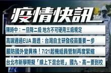 2021-07-19 20:14:37來看一組台灣疫情簡訊。指揮官陳時中今天指出:一旦降為二級,地方不可沿用三級規定。高端通過EUA,外媒表示,這是台灣自主研發疫苗重要一步。為了嚴防國外變異株,7/21起,機組員管制將再度緊縮。台北市新學期擬「線上下混合班」,國九、高一要到校。