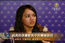 2011-03-21 22:09:28美國神韻國際藝術團18日晚間在基隆市文化中心的首場演出,受到觀眾們的熱烈迴響,在演出過程中,觀眾們有時隨著節目的歡快節奏鼓掌連連,也為其中饒富寓意的節目而感動。演出結束時,觀眾們的熱烈掌聲讓神韻藝術團的藝術家們謝幕兩次。一群來自中美洲的交換學生們,分享了她們觀賞神韻晚會的感受。