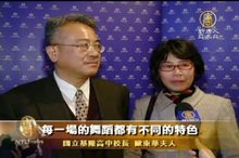2011-03-21 22:16:24很多觀眾在觀賞神韻晚會後,都對神韻能將中華五千年文化的深厚底蘊展現在一台晚會中,感到十分驚喜。3月19日晚間,基隆高中校長歐東華伉儷和基隆市立國樂團指揮郭銘傳老師,在觀賞完美國神韻國際藝術團在基隆文化中心的演出後,開心的分享了他們觀賞神韻後的感動。