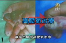 2011-02-25 20:10:1142歲的陳先生在工作的時候,被機器壓到右手拇指,將近半個拇指被壓碎,醫生一度判定要截肢,但是在家屬的堅持下,花費3個小時的手術時間,將拇指碎肉拼回,再配合20多次的高壓氧治療,目前恢復情況良好。