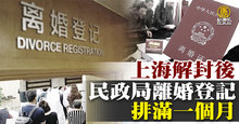 上海解封後 民政局離婚登記排滿一個月