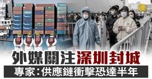 外媒關注深圳封城 專家:供應鏈衝擊恐達半年