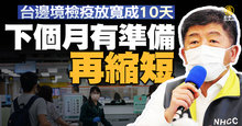 台邊境檢疫放寬成10天 陳時中:下個月有準備再縮短